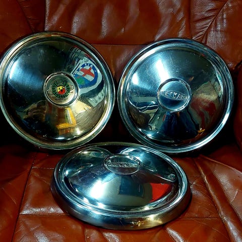 Fiat/Neckar 600/770/850 hjulkapsler, Fiat/Neckar 600/770/850 hjulkapsler, 1. 4 stk.fiat 600hjulkapsler jeg har en tilbage til100 kr....diameter 21.6 cm.