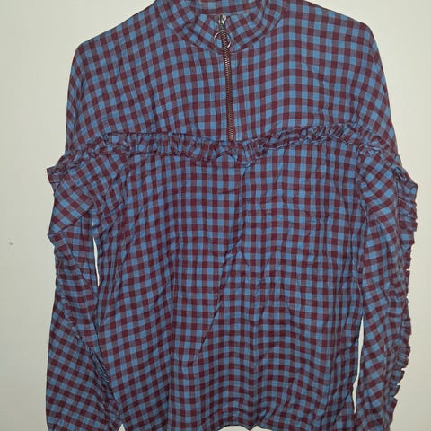 Bluse, Mbym, str. 34, Sort, Næsten som ny, Str xs. Bluse med rynk foran og små hvide “perler” i stoffet.
