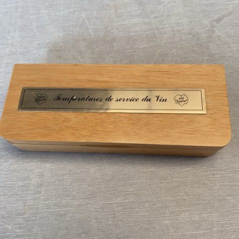 Fransk produceret fra L' Atelier du Vin med topstykke i træ. Medfølgende ark til smagenoter ved vinsmagning. En oplagt gaveidé til vinentusiasten. Er kommet i vor besiddelse på samme måde, men er aldrig taget i brug.