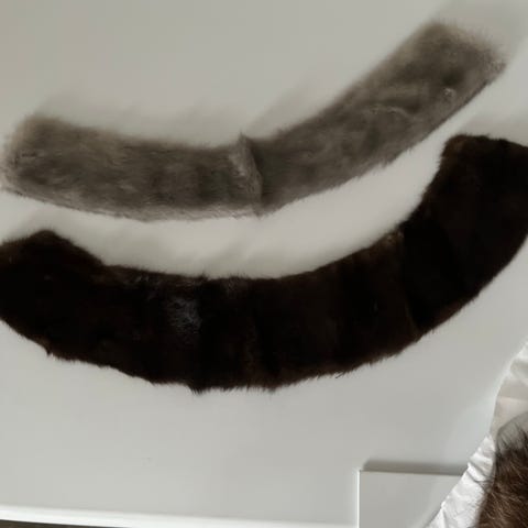 Andet, Minkkraver, str. 50, beige, mink, Ubrugt, Minkkraver og manchetter, hver med kendetegn af højeste kvalitet, sjælden beige farve, ny med kendetegn, vintage