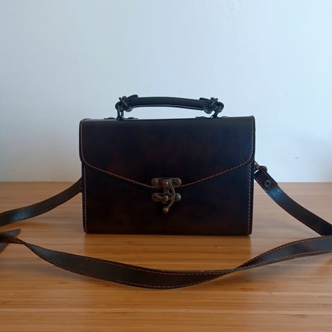 Crossbody, andet mærke, kernelæder, Vintage læder taske med lang justerbar aftagelig rem ca 89 cm