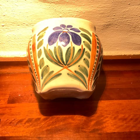 Særdeles fin glaseret urtepotte skjuler i to farver