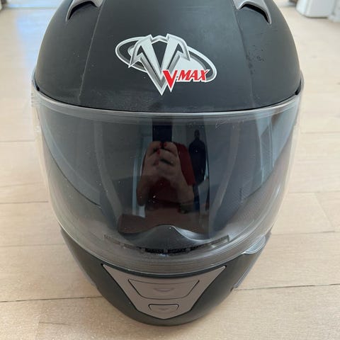 Hjelm, V-Max , Mach 1, Hvid, God, men brugt styrthjelm