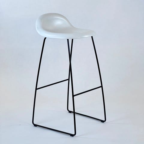GUBI, 3D 33, Barstol, Meget velholdt hvid stol polstret med mørkeblåt Kvadrat Remix stof.