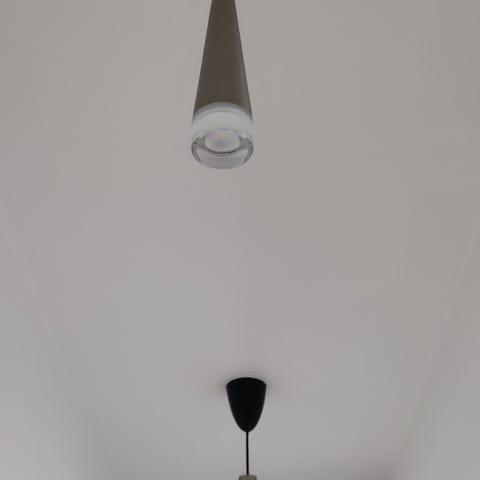 To smukke og solide pendeller med to flydende/svævende skiver, der naturligvis kan sidde helt lige, men som også indretter sig efter lampekernens hældning.