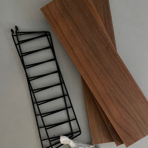 Vægreol / entré reol / string hylder i lilla metal uden træhylderne.