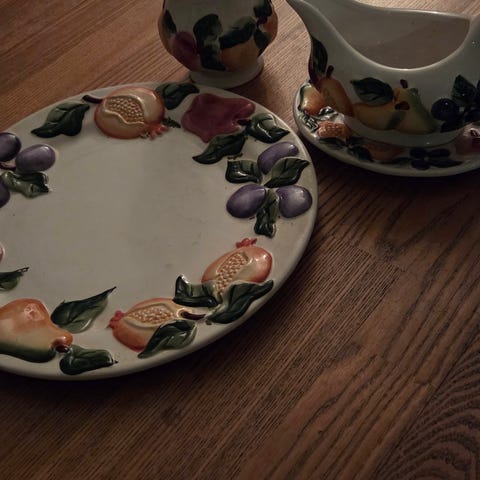 Skøn skål i afdæmpet farver med alligevel utrolig dekorativ