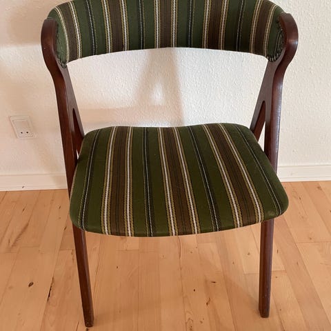 Spisebordsstol, Ældre i afsyret eg. Flot stof med nitter