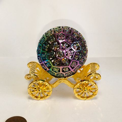 Polyhedralt metal terningesæt i guld/grøn/rød med guld skrift fra Dakota Irish. Indeholder syv terninger, henholdsvis 1d4, 1d6, 1d8, 1d10, 1d12, 1d20, 1d%.