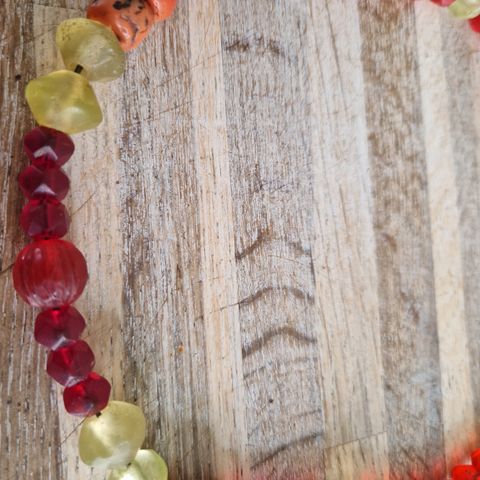 Vintage halskæde - Serpentin, Karneol & Sølv