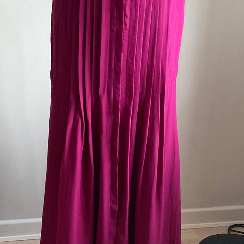 Festnederdel, str. 34, By Malene Birger, Beige, Uld, viskoseblanding, Ubrugt, Meget festlig nederdel, slank med 4 påsatte stykker med frynser i blankt guldmateriale. Med pristag dvs aldrig brugt. Fragt 47kr med Gls