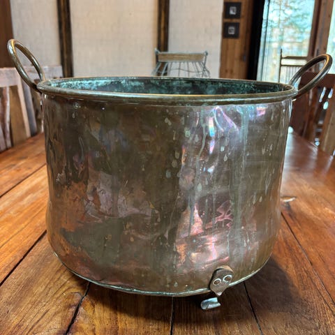 Håndlavet gammel kobberspand. Måske fra 18.-19. århundrede.
