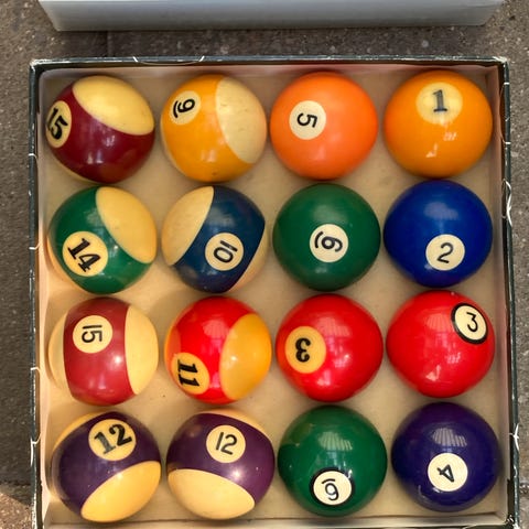 Billard Tilbehør, Billard kugler. 2 sæt. Forskellige størrelser. Bemærk at ingen af dem er komplette.