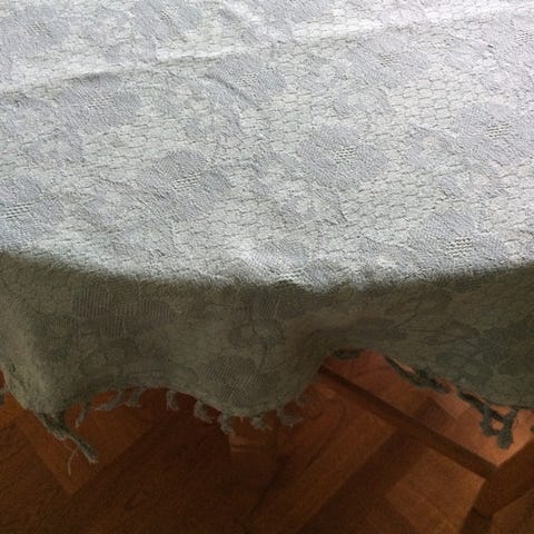 Dug , 100 % Bomuld, Rund Dug med fryns. 100 % Bomuld. Sart gul/ Beige farve. Ingen brugstegn. Ø 150cm
