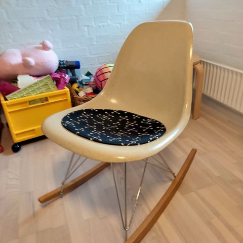 Eames, Gyngestol, Fedt gyngestol fra Eames. Produceret hos Herman Miller i glasfiber og stof. Pæn stand. Almindelige stel følger også med.