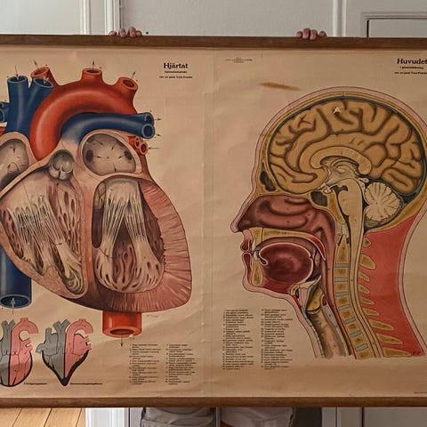 skolekort, motiv: De røde og hvide blodlegemer, b: 84 h: 115, Gammel skolekort måler 84 x 115 cm