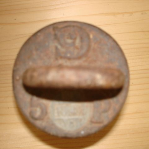 Lod, jernlod, Jern, Gammelt 20 p (der står P øverst, så tænker pund), ellers kg lod med patina