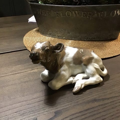 Liggende kalv figur, Royal Copenhagen , 1968, Royal Copenhagen figur - Liggende kalv - designnummer 1072. Formgivet af Knud Kyhn. Længde 17cm og højde 10 cm. 1 sortering og i fin stand.
