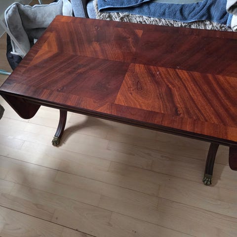 Sofabord, Ved ikke, andet materiale, b: 52 l: 143 h: 55, Antikt retro sofabord med hylde og udtræk
