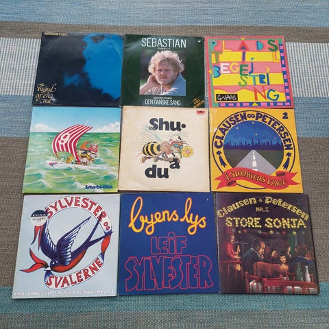 Pladerne er i god stand og sælges for 20 kr./stk. eller samlet for 100 kr.