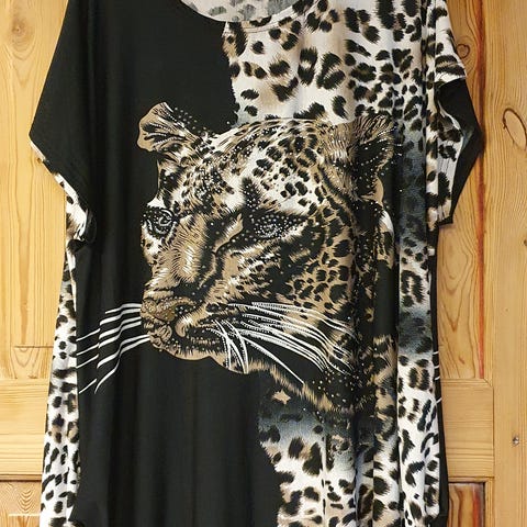 713. En rød skjorte/tunika L/XL med ¾ lange ærmer og knapper foran. Den er gennemsigtig og en lille flæse nederst og knap detalje ved ærmerne, er i 100% Polyester.