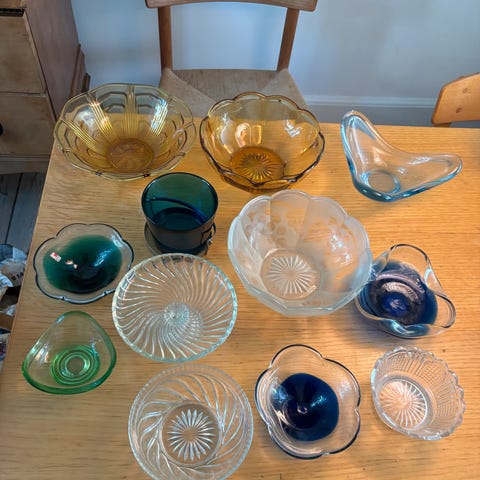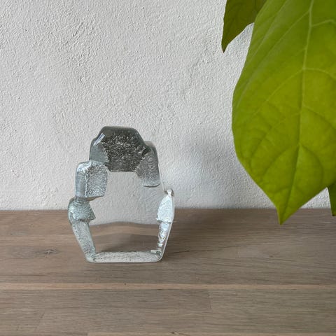 Glaskunst - svensk, 5 flotte isbjerge/klippeblokke/træer i lidt forskellige størrelser. Tykke og tunge, så de står sikkert. Uden fejl eller afslag. Også superflotte med fyrfadslys bagved her i den mørke tid.