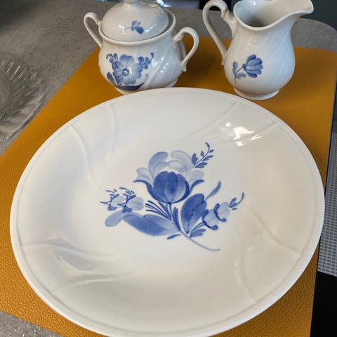 Porcelæn, Fattigmands Blå Blomst ovalt fad 23 cm , Fattigmands blå blomst, Brugt men i god stand.