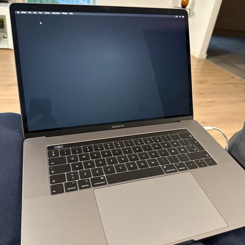 Andet mærke MacBookPro, Defekt, En af mine ansatte kom til at køre sin taske over med denne i. Der er lidt skrammer og skærmen er som på billedet.
