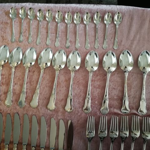 Sølvtøj, Spisebestik, Trinita, Cohr, Flot velholdt spisebestik i sterlingsølv. Ialt 62 dele. 13 middagsknive l: 21,5 cm, 16 gafler l: 20 cm, 16 spiseskeer l: 18,5 cm, 16 teskeer l: 12,5 cm, 1 serveringsske l: 21 cm. Samlet pris kr 34000
