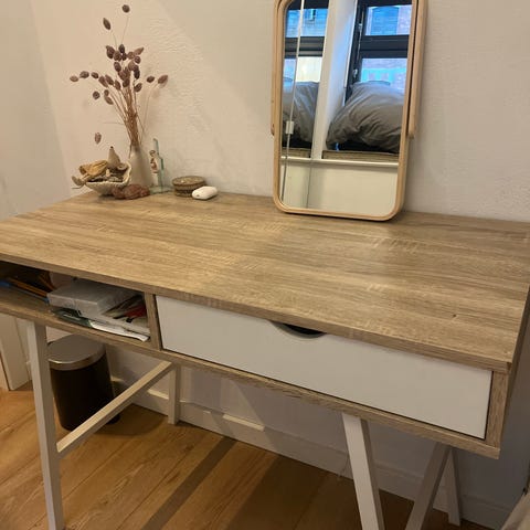 Der er spildt lidt neglelak på bordpladen, og ellers pænt velholdt.