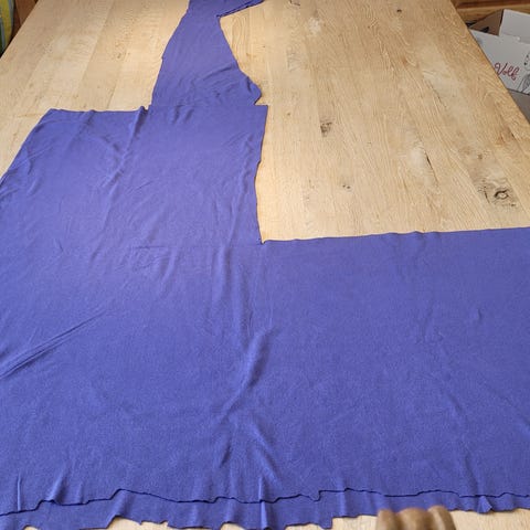 STOF. Ribjersey tubestrik 46,5cm bred ( dvs. 93 foldet ud) x 195cm lang. Dejlig blød elastisk kvalitet. Mørkeblå. Farve som billede med tændstikæske. Vejer 475g.