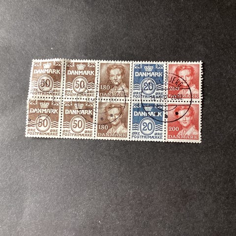 Danmark, stemplet, Danmark. HS 7, Enkeltstripe + 4 striper fra hæftet