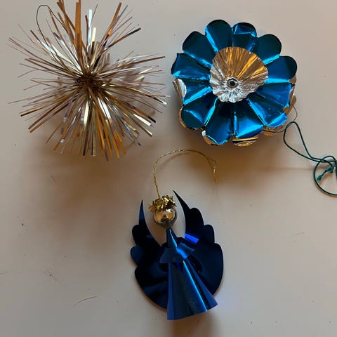 Gamle folieblomster, Smukke gamle folieblomster med glas-minikugler i midten. Aldrig brugte, og i original emballage. Den er dog brudt på bagsiden.