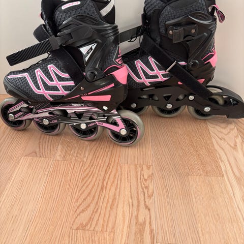 Rulleskøjterne er brugt under en håndfuld gange og fremstår i næsten ny stand med meget lidt slid.
