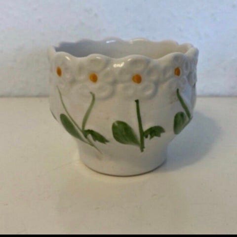 Smuk Art Deco krukke, Gammel krukke fra 1920'erne. Flotte mønstre og forårsfarver.