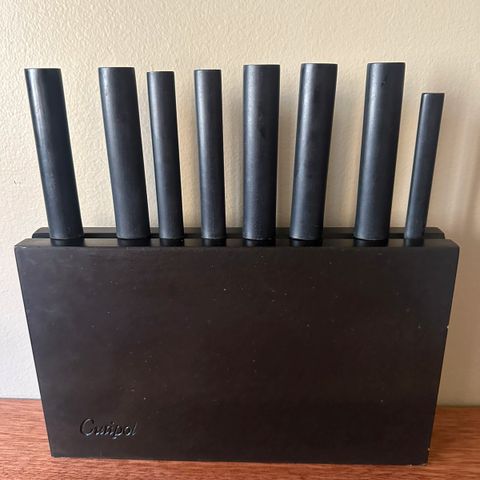 Fantastisk flot (nærmest ubrugt) Knivsæt på drejeblok-/dreje fod