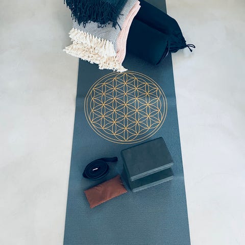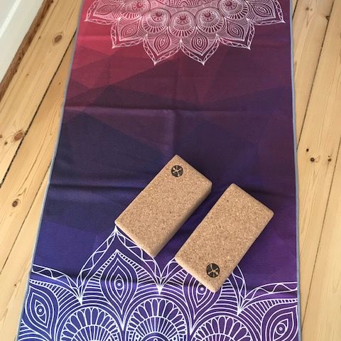 Yogaudstyr, Handlsker, Fine yogahandsker I fine lyserøde og blå farver. De er brugte en gang.