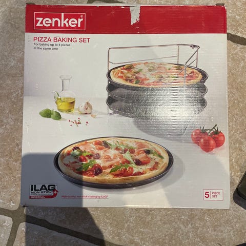 Pizza bagesæt, Zenker, Fire pizza plader med stativ.