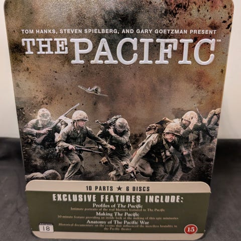 The Pacific 6 dvd i flot metalboks, DVD, dokumentar, Afhentes i Esbjerg eller sendes til pakkeshop for 50kr