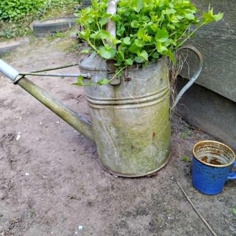 Den er utæt i bund, så rigtig god til blomster krukke