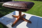 Fodskammel, læder, Fodskammel, 1 stk Firkantet Fodskammel med Brun Læder og Teak Understel Højde 41 cm Bredde 50 cm Dybde 50 cm