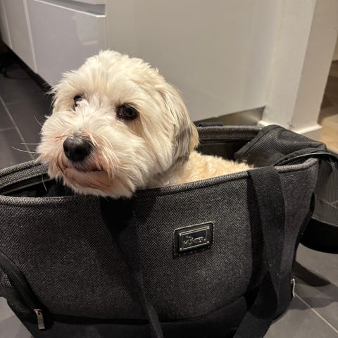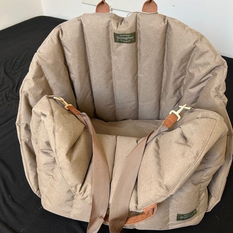 Hundetaske, Hunting Pony bil taske, Super ekslusive helt ny transport hundekurv / pude til din bil. Mørkegrå. Har indvendig strap som holder hunden i kurven og strap til at sætte rundt om sæde eller nakkestøtte Ny pris 1500kr. Ikke brugt