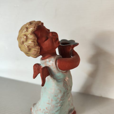 2) LILLE SØD PIGE ,MED FIN KJOLE HOLDER OM LYSET, HUN HAR ,FINT LILLE ANSIGT !! HUN MÅLER I HØJDEN 10 CM OG I OMFANG 14,5 CM !! PRIS 35 KR !!