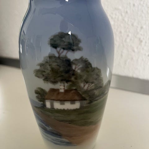 Porcelæn, Vase, Royal Copenhagen, Smuk vase nr.2664-208, 1. sortering. Motiv åkande/guldsmed. 18 cm høj / diameter 9 cm. Ingen skår/ afslag.