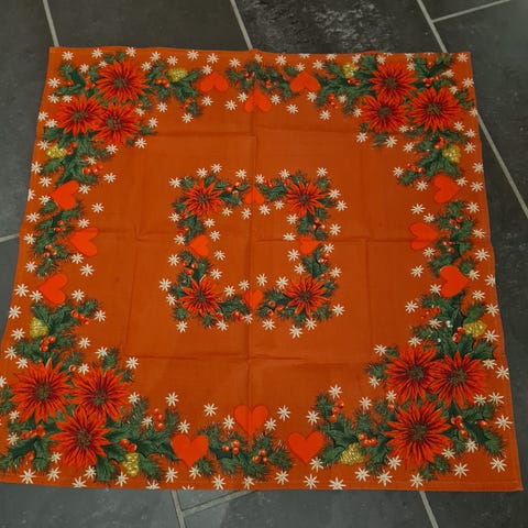 Juledug med juleroser, Fin dug måler Ca. 150 x 110 cm.