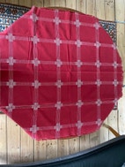 Retro dug, Rød kvadratisk dug med hvidt mønster.