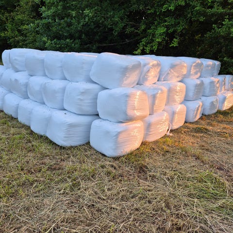 Wrap-baller i Morten Koch størrelser 25-35 kg/stk. 1.slæt høstet 12/6 i solskin og tørt vejr på mark uden ukrudt i det skønneste sommervejr. Ikke sprøjtet. Meget lækkert græs. 120 kr/stk. Gørløse (send helst pb, da jeg ikke ser kommentarer så ofte her)