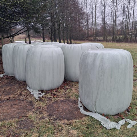 Wrap-baller i Morten Koch størrelser 25-35 kg/stk. 1.slæt høstet 12/6 i solskin og tørt vejr på mark uden ukrudt i det skønneste sommervejr. Ikke sprøjtet. Meget lækkert græs. 99 kr/stk. Gørløse (send helst pb, da jeg ikke ser kommentarer så ofte her)