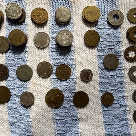 Andre samleobjekter, Poletter, Mønter til gl spilleautomater 100dkr eller byd!