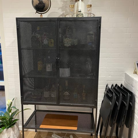 Skabet har 3 skuffer og der er del inddeler plader med hvis man ønsker at lave specifikke rum i skufferne.
